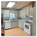 Now this is a great place to call home. Olympic Mobile Village is well managed and this home is well cared for and move-in ready! The plumbing valves, bibs, supply and shut off has all been updated! The home enjoys a wide open feeling with vaulted ceilings. All updated kitchen with tile countertops and newer appliances. Storage rack stays if you like. 3/4 bath off the Primary Suite with a nice walk-in shower. Full Guest bath in case you like a dip. Wait until you see that amazing shower system!! 2 10x12' sheds stay. Big back yard even with the sheds and the garden raised planters stay as well. Double car carport not attached to the building. This is one sweet home! $795 Lease per month and 55+ area, 2 pets allowed, indoor 40# total. Enjoy!