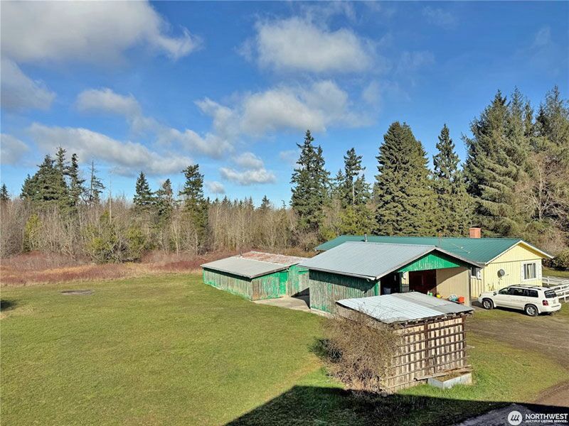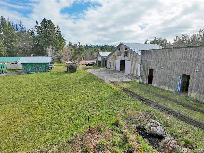 This gives One of a Kind a new meaning! 48 acres of pristine, level, timber land, open, light and amazing. There is the main house 1710 sf with original hard wood flooring, nice rooms, large open kitchen, full guest bath and 3/4 bath for the Primary Bdrm. Full size fireplace for the living room as well as a huge free standing wood stove to heat the rest of the house. F/A heat is oil. Across the driveway of the home, a Full size RV garage, 1680 barn/shop with a shop and large area upstairs. then roughly 900sf shop, 3 stall covered shed attached, another roughly 900 sf bldg. Then on the house side are 2 small sturdy buildings and roughly 800sf double building where there is a washing area for the rock work the owners use to do on a HUGE scale. Be sure to check the video for the real experience. The 40 acres stretches from the field all the way behind Arrow Lumber!